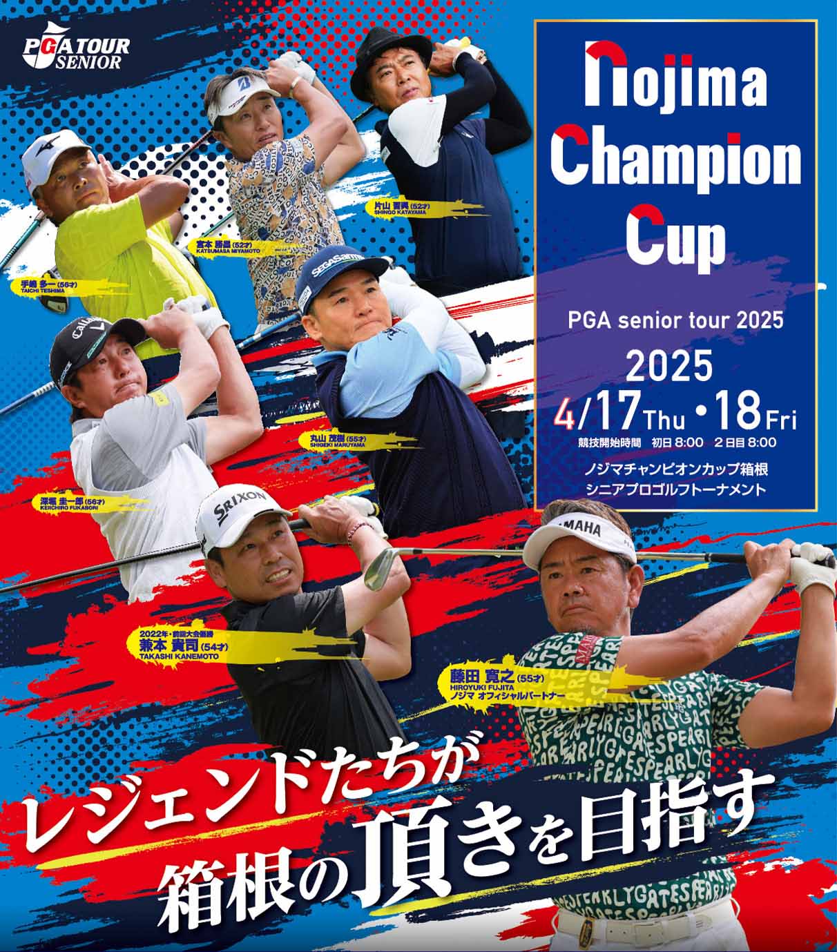 「箱根町を応援したい」という想いから開催に至った今大会も今年で9回目。国内シニアツアー開幕戦として、箱根カントリー倶楽部を舞台に2日間にわたって行われる。
